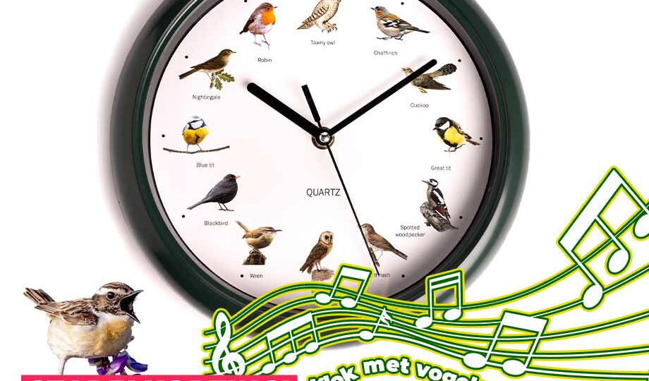 Een vogelklok die elk uur een écht vogelgeluid laat horen. Super sfeervol, rustgevend en een vrolijke eyecatcher aan de muur. De natuur aan de muurHaal met deze vogelgeluid klok een vleugje natuur in huis. Elk uur laat een van de twaalf populairste vogels zijn echte opname horen. Van een zachte ochtendgroet tot een levendige bosvibe…