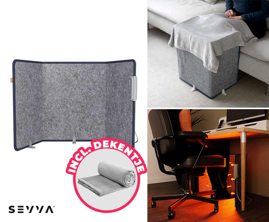 Informatie SEVVA® Infrarood Verwarmer incl. GRATIS fleece deken Zeg vaarwel tegen winterse kou met de SEVVA® Infrarood Beenverwarmer – dé oplossing voor een comfortabel en efficiënt thuis tijdens het koude seizoen. Met zijn opvouwbare ontwerp past deze verwarming perfect in kleine ruimtes en biedt hij ruimtebesparende warmte. En voor extra gemoedsrust schakelt hij automatisch uit…
