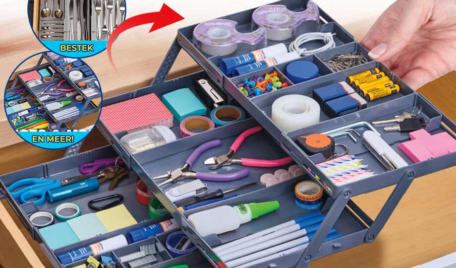 Rondslingerende spullen in lades? Niet meer met deze slimme lade-organizer. Van sieraden tot keukengerei, alles krijgt een eigen plekje. Drie verdiepingen vol opberggeluk Met 3 niveaus en 12 verstelbare verdelers pas je deze organizer helemaal aan. Zo benut je elke centimeter en blijft alles netjes geordend. Sterk, stijlvol en praktisch Gemaakt van stevig ABS-materiaal, klaar…