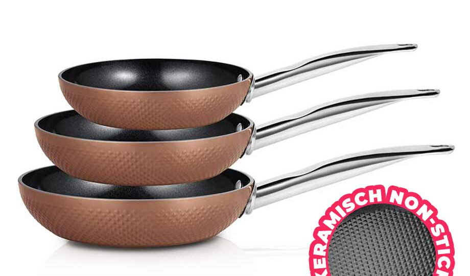 Of je nu een snelle solo-maaltijd maakt of een feestmaal op tafel tovert, deze roségouden pannenset is er klaar voor. Met drie formaten – 20, 24 en 28 cm – zit je altijd goed. Van gebakken eitje tot een stapel pannenkoeken, deze set draait nergens z’n hand voor om. Zeg vaarwel tegen aangekoekte drama’s Dankzij…