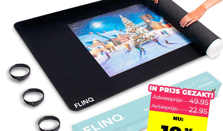 Geniet van zorgeloos puzzelplezier met de FlinQ oprolbare puzzelmat en laat alle stress verdwijnen. De puzzelmat biedt niet alleen een perfecte plek om je puzzel neer te leggen, maar neemt ook de laatste zorgen weg die je nog zou kunnen hebben. Het leggen van een puzzel is een moment van ontspanning, en met onze mat…