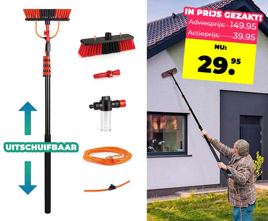 Met deze telescopische waterborstel worden alle schoonmaakklusjes buitenshuis een stuk makkelijker! Dankzij de robuuste borstelharen én de ingebouwde waterborstel reinig je snel en eenvoudig diverse oppervlaktes. Robuuste borstelharenSchoonmaken op hoogte was nog nooit zo makkelijk geweest. Deze uitschuifbare waterborstel is verkrijgbaar in 3 maten: een model die tot maximaal 4,6 meter, 6,5 meter Deluxe, en…