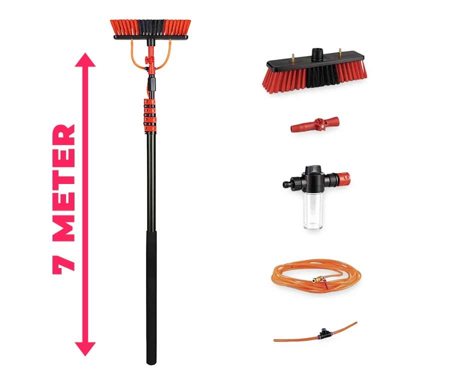 Met deze telescopische waterborstel worden alle schoonmaakklusjes buitenshuis een stuk makkelijker! Dankzij de robuuste borstelharen én de ingebouwde waterborstel reinig je snel en eenvoudig diverse oppervlaktes. Robuuste borstelharenSchoonmaken op hoogte was nog nooit zo makkelijk geweest. Deze uitschuifbare waterborstel bestaat uit 4 delen die je maximaal tot 7M kan schuiven. Heb je groene aanslag op…