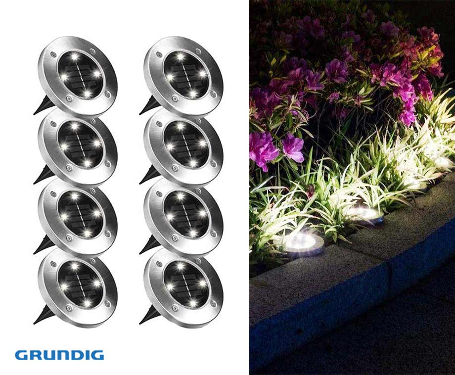 Zodra het donker wordt, floept de grondspot automatisch aan. Geen gedoe met stekkers of schakelaars. Overdag laadt de spot zichzelf op via zonne-energie en ’s avonds zorgt hij voor een warme, witte gloed dankzij de 8 heldere LED’s.
