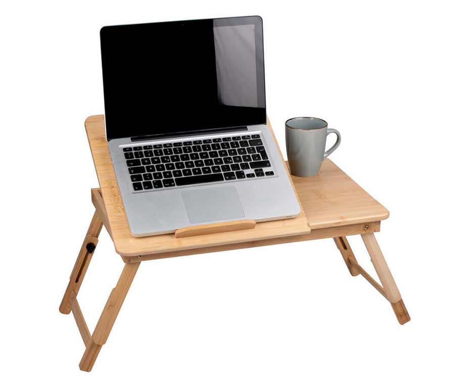 Een handige laptoptafel van hout die werken, streamen en ontspannen comfortabeler en flexibeler maakt, op de bank, in bed of aan het bureau.